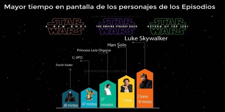 ¿Cuánto tiempo aparecen en pantalla los personajes de la Trilogía Original?